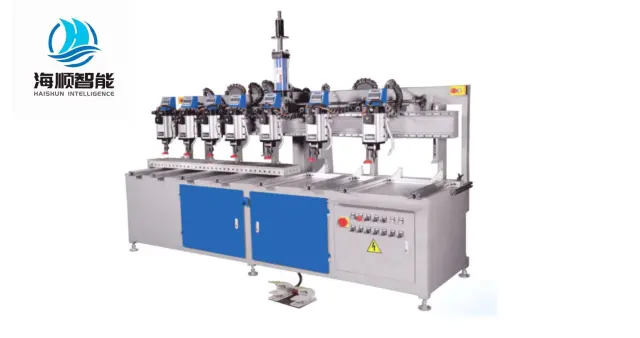 High-Power Motor for Enhanced Drilling PerformanceThe HS-168A7 drilling machine is equipped with a 2.5KW high-torque motor, ensuring powerful and efficient hole drilling in aluminum templates. This CNC drilling machine delivers smooth and burr-free holes, making it an essential tool for high-precision applications.Advanced CNC Control System for Precision OperationsThis CNC drilling machine features an imported PLC control circuit, allowing operators to control drilling parameters with high accuracy. The system ensures consistent hole spacing and alignment, critical for large-scale aluminum template drilling.Heavy-Duty Components for Long-Term ReliabilityBuilt with Schneider low-voltage electrical components and Taiwan AIRTAC pneumatic parts, the HS-168A7 drilling machine is designed for long-term durability. These premium components ensure stable and maintenance-free operations, reducing downtime and improving production efficiency.User-Friendly Digital Display for Easy AdjustmentsThis CNC drilling machine is equipped with a multi-station digital display device, allowing for quick size adjustments and precise hole positioning. The easy-to-use interface minimizes errors and enhances the overall efficiency of the drilling machine.Precision Machined Track Seat for Accurate PositioningTo further enhance precision, the HS-168A7 CNC drilling machine includes a precision-machined track seat. This feature ensures stable drill bit positioning, preventing misalignment and ensuring high-quality hole consistency.